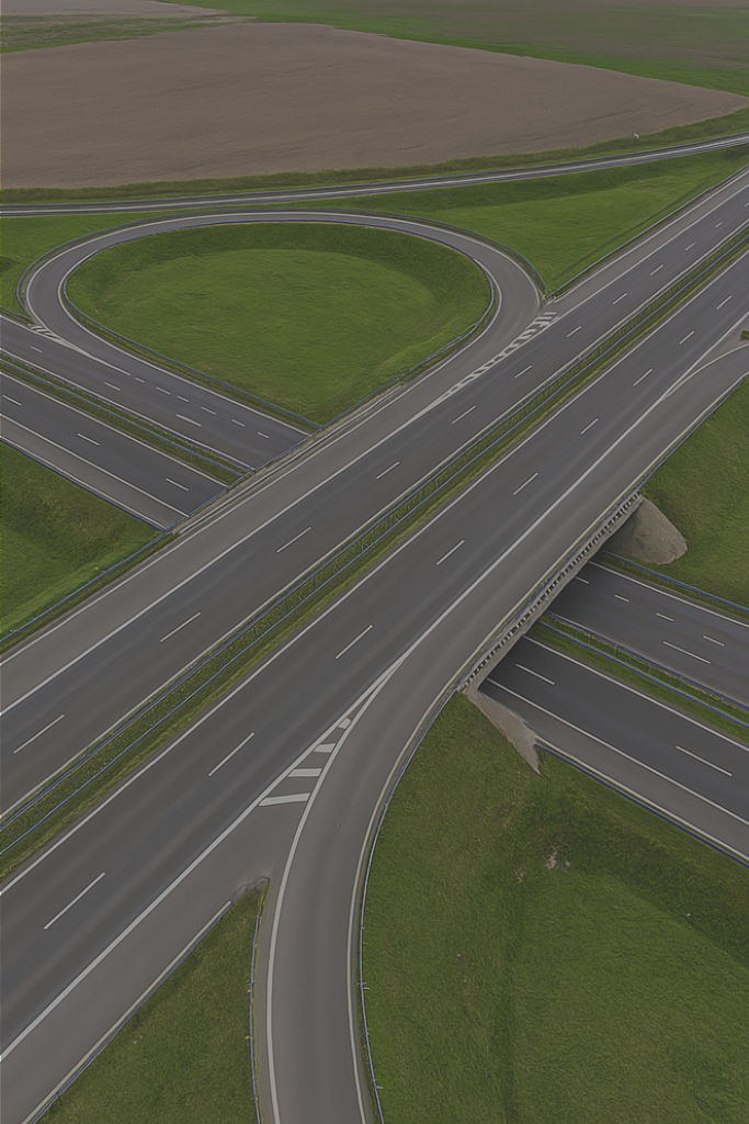 Concepção técnica de acessos rodoviários que otimizam a conexão e o fluxo de veículos entre rodovias, áreas urbanas e empreendimentos comerciais e industriais.
