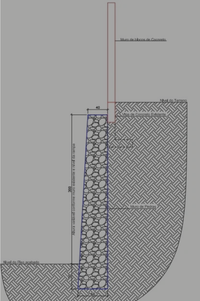 Dimensionamento e implementação de estruturas técnicas de contenção, incluindo muros de arrimo, cortinas atirantadas e gabiões, garantindo segurança e estabilidade.